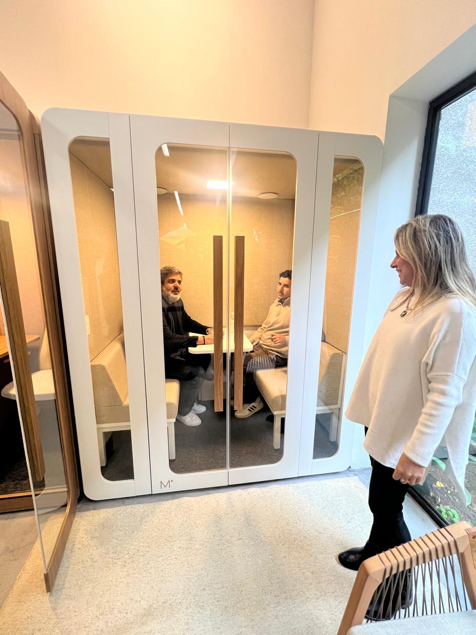 Sem revelar todos os detalhes, podemos dizer que essas mini-salas estão prontas para ocupar novos contextos e dialogar com diferentes públicos, reforçando o potencial da arquitetura corporativa em ambientes além do escritório tradicional.
